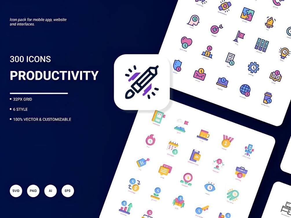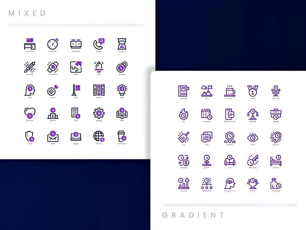 Productivity Icon Pack comprises 200 stylish icons that showcase the most popular services and ideas. It’s perfect for website design, mobile applications, presentations, analytical reports, infographics, or website templates.